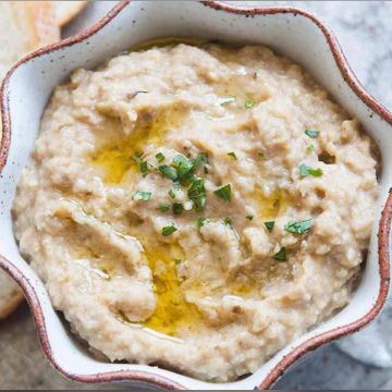 Tahini sauce, garlic, lemon juice, blended garbanzo beans.