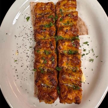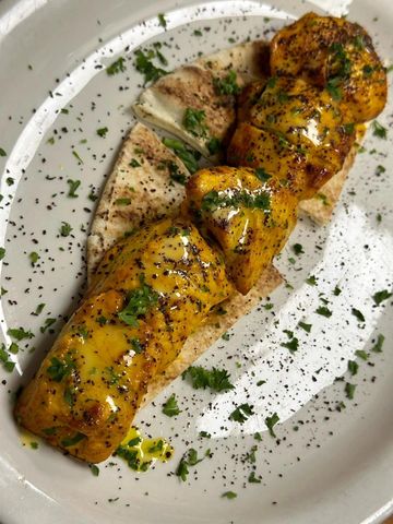 Marinated and charbroiled boneless chicken breast chunk, served with half of a pita bread.