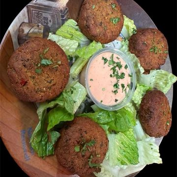 Deep fried ball Seasoned garbanzo beans mixed with greens and herbs.