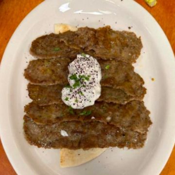 Marinated lamb chops and one skewer of seasoned ground beef kabob served with rice, garden salad, pita bread, and a 2 oz side hummus or tzatziki.